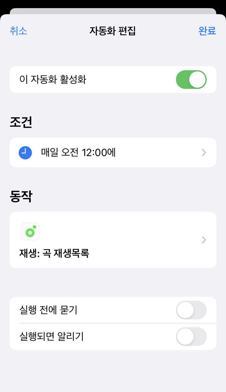 그럼 12시에 자동으로 플레이리스트가 재생되도록