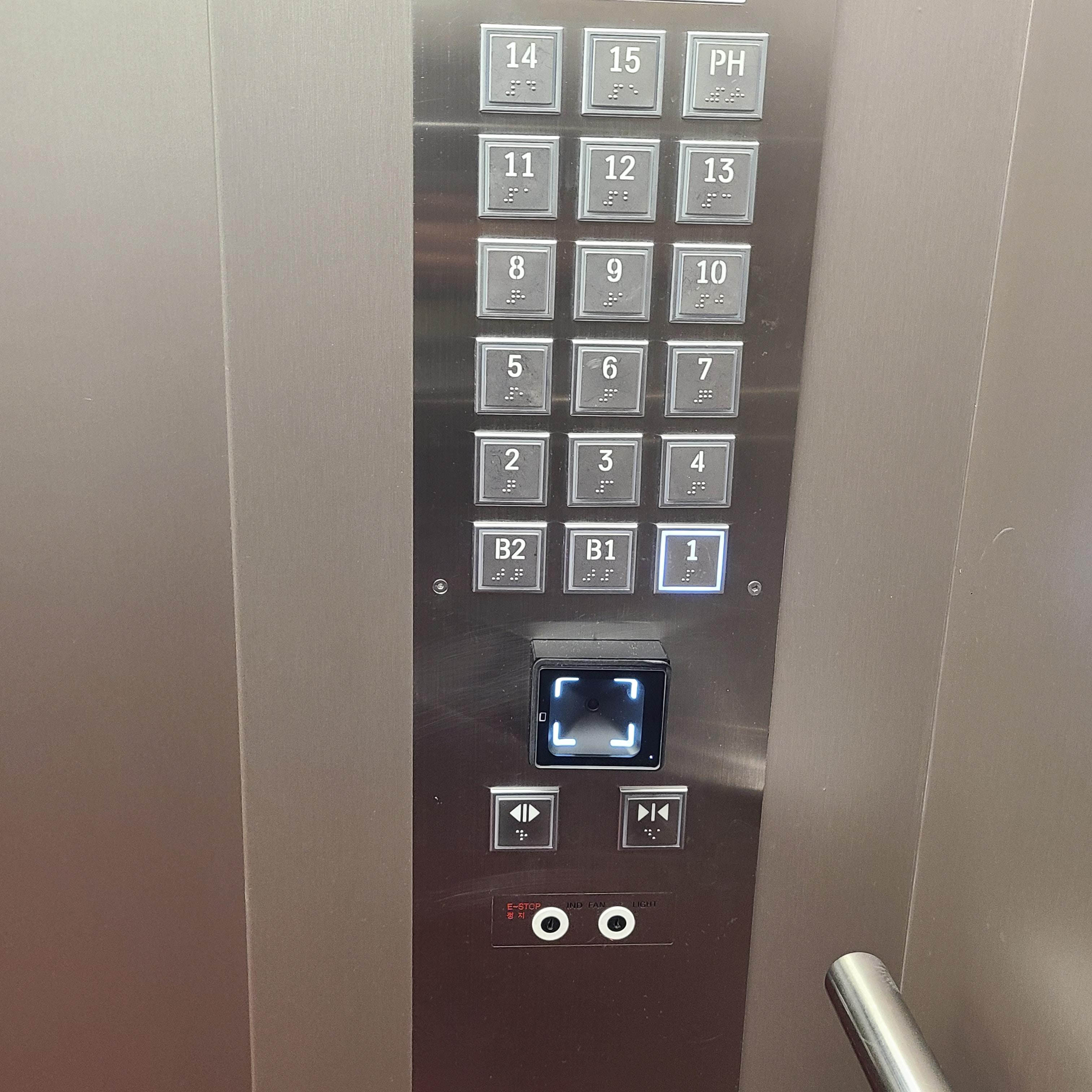엘레베이터를 타니 이렇게 QR코드 찍는 곳이 있었다.
