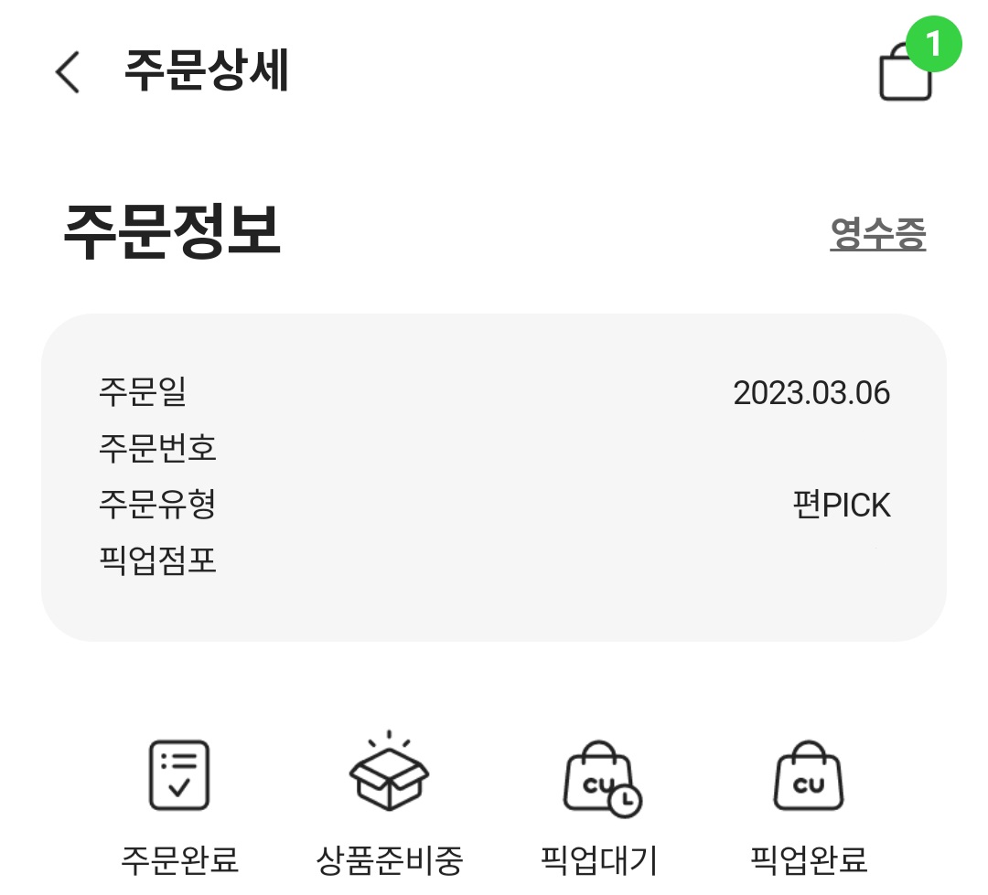 (저는 픽업 완료 후 캡쳐했습니다)