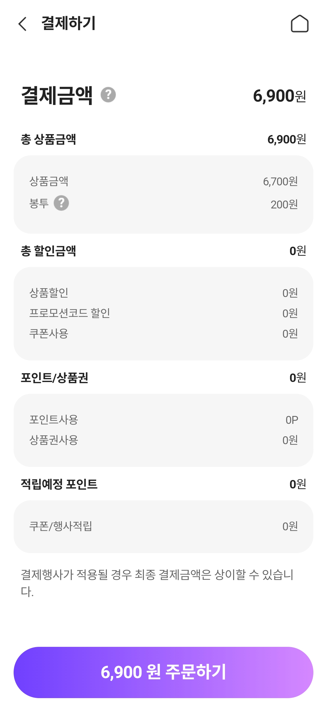 포장 봉투 비용이 200원이나 드네요.🤔