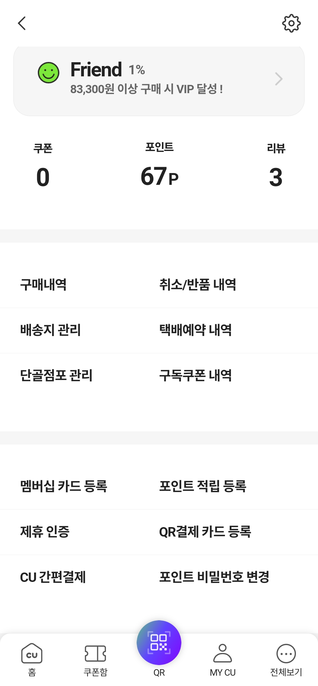 홈화면에서 하단 MY CU를 누르고