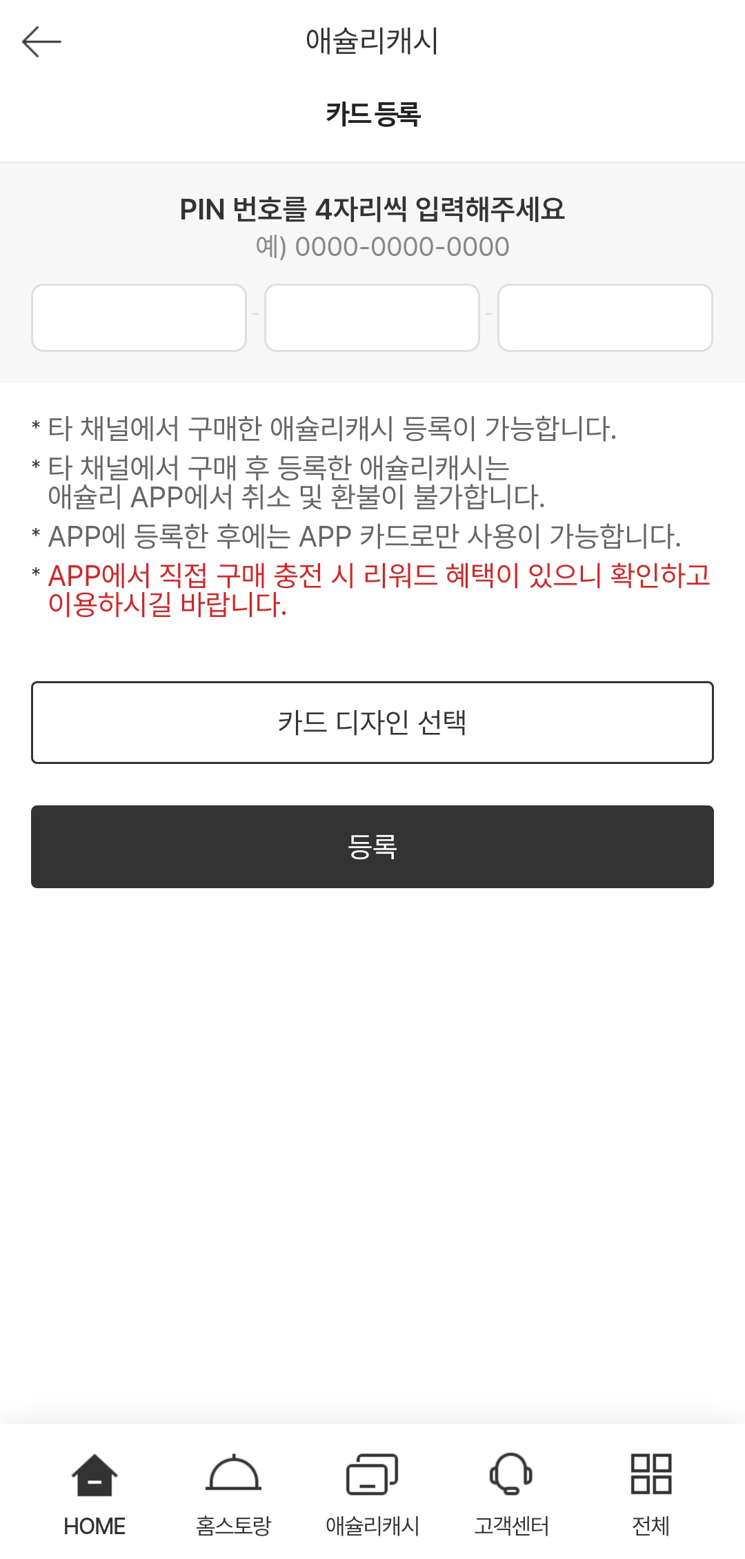 카드 등록을 눌러주세요!