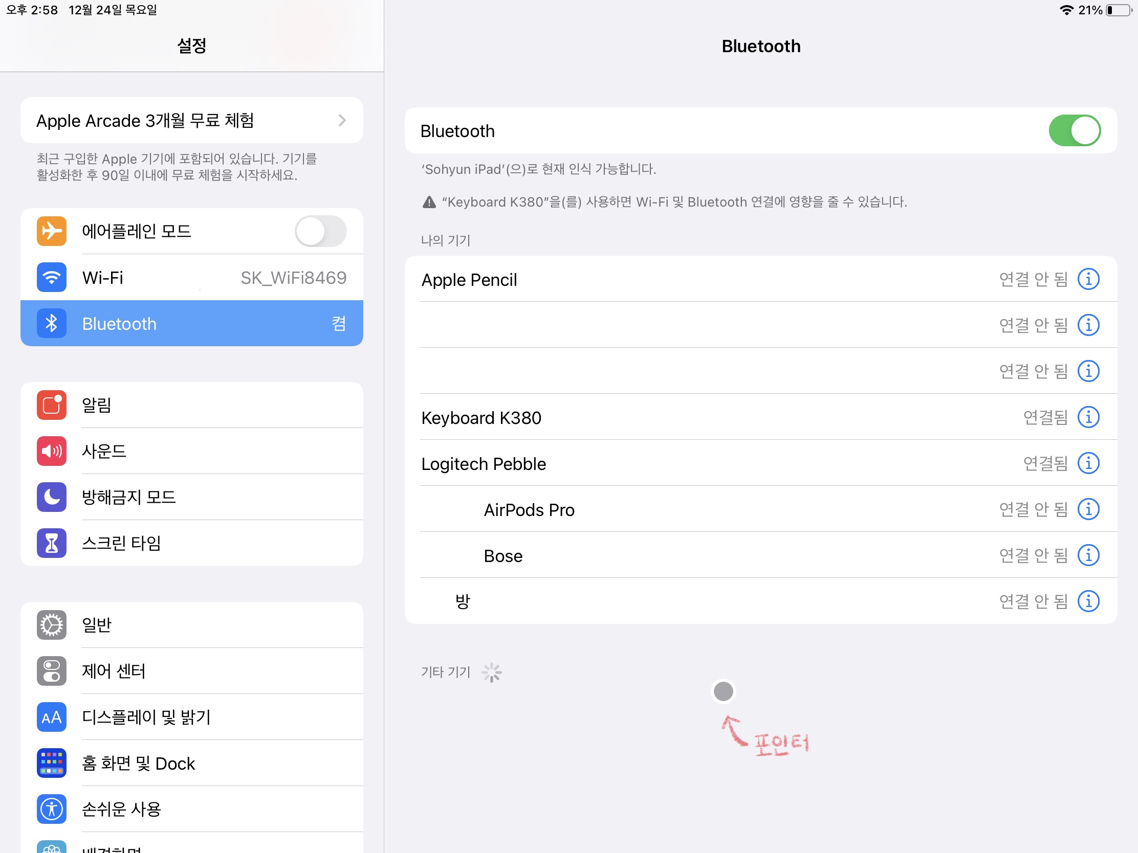 아이패드는 블루투스를 이용해서 사용하고