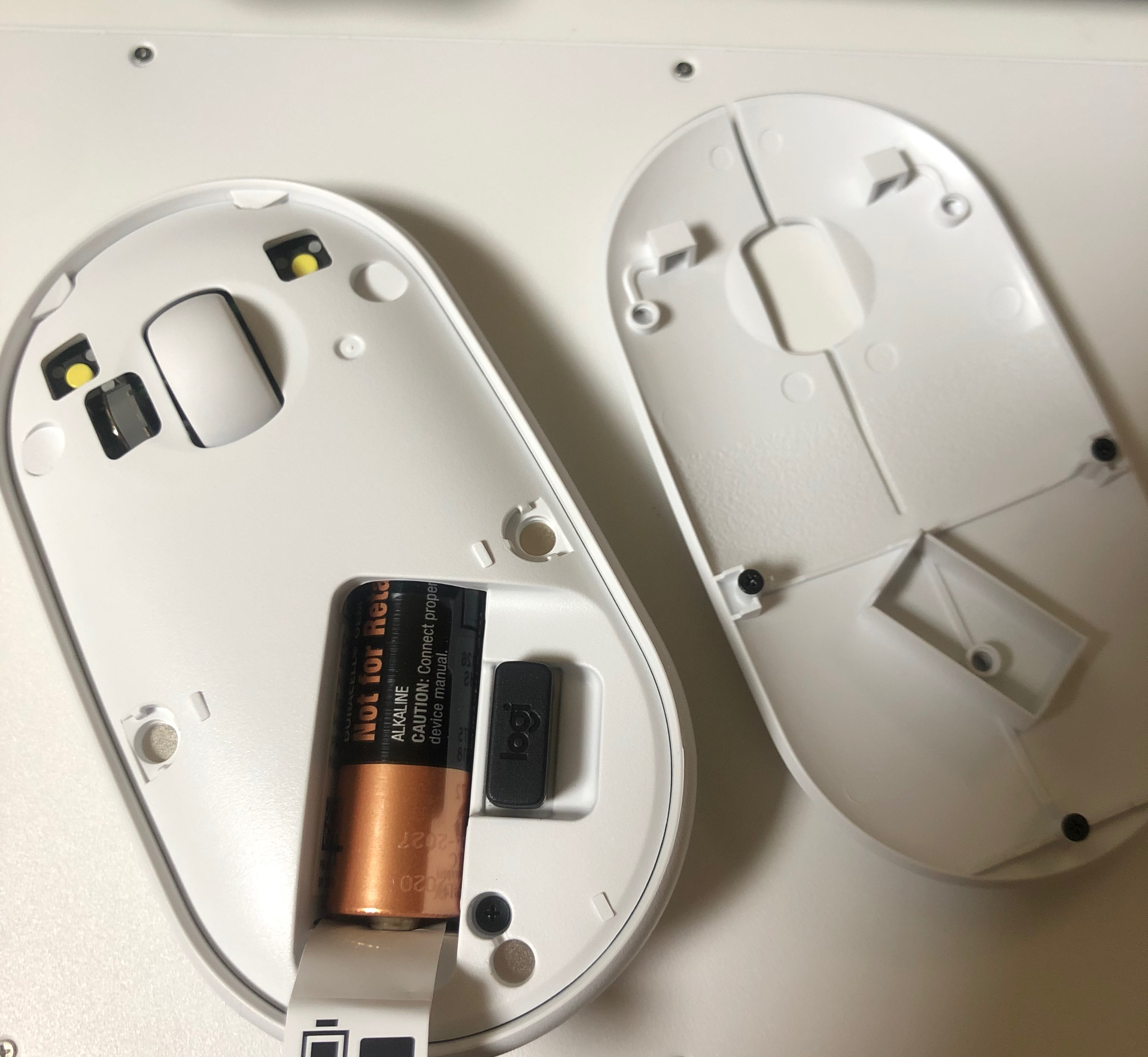 AAA배터리 2개를 뒷면에 넣으면 된다. 배터리를 한번 넣으면 꽤 오래 쓴다고 한다.