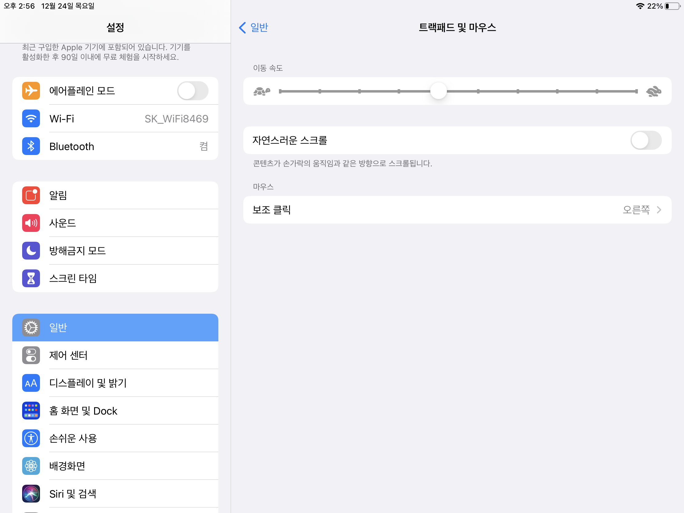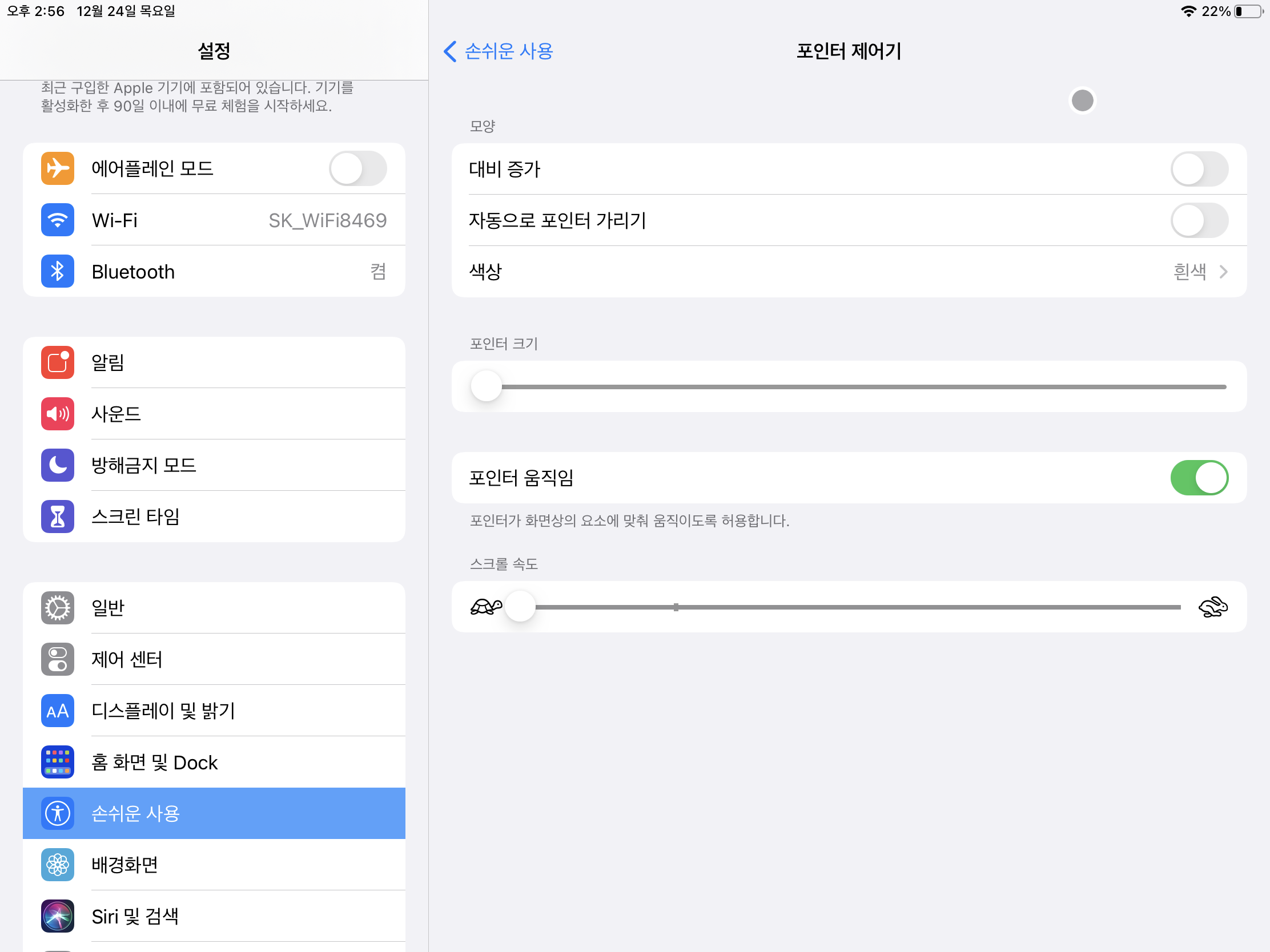 포인터 색상, 크기, 스크롤 속도 등을 조절할 수 있다.