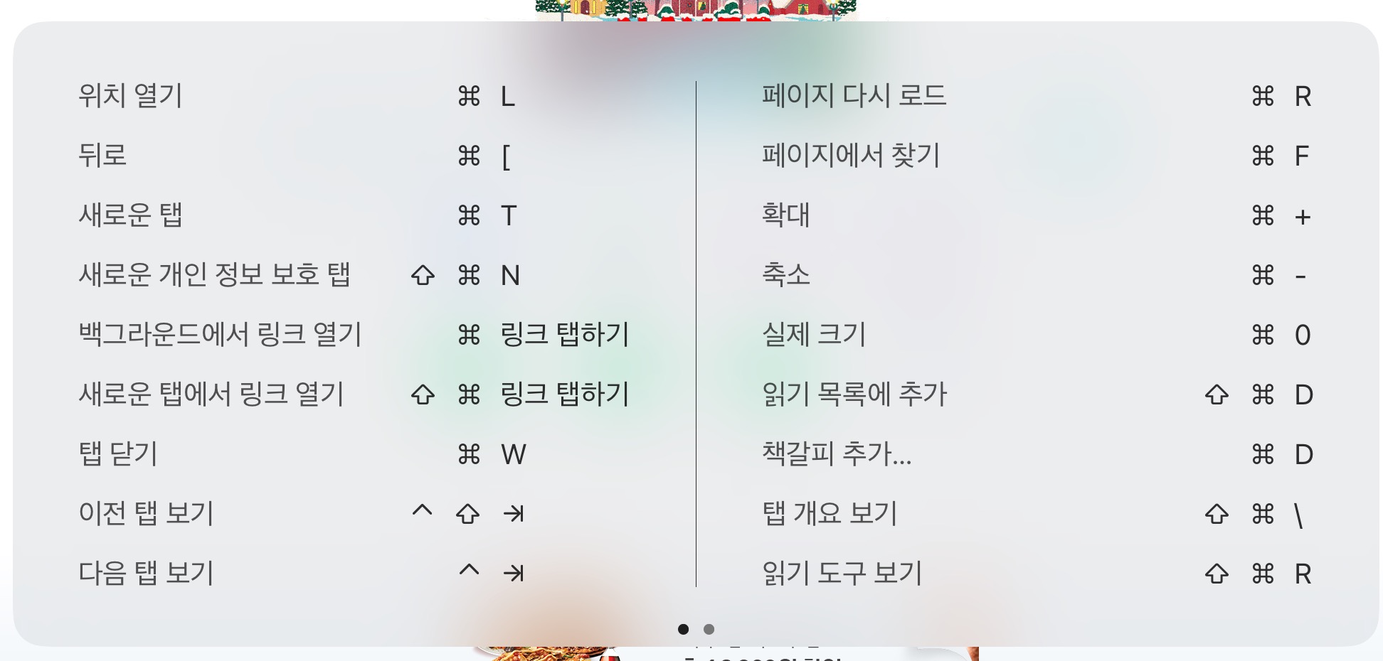 다양한 단축키 목록이 나온다.