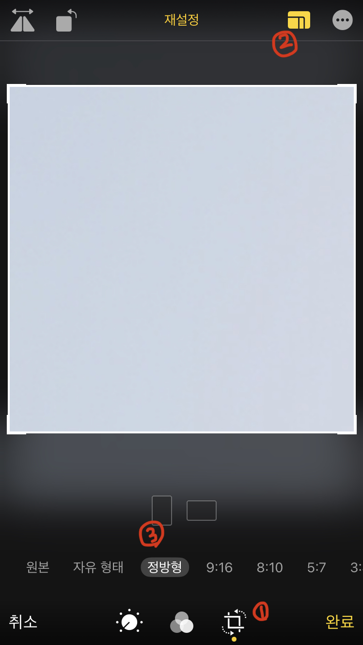 그리고 사진에 들어가서 정방형으로 편집해주기!