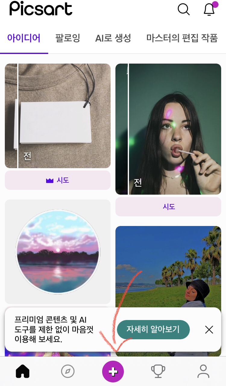 그 다음 픽스아트 어플을 열어서