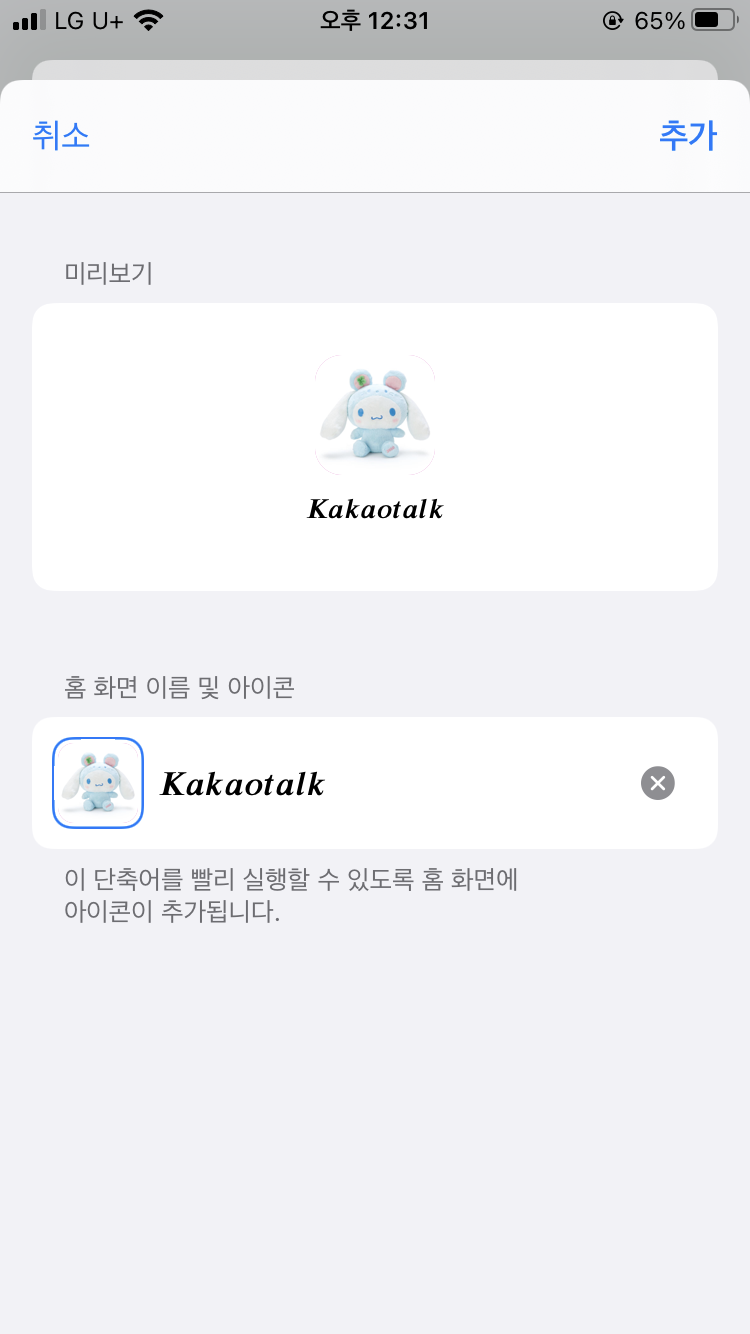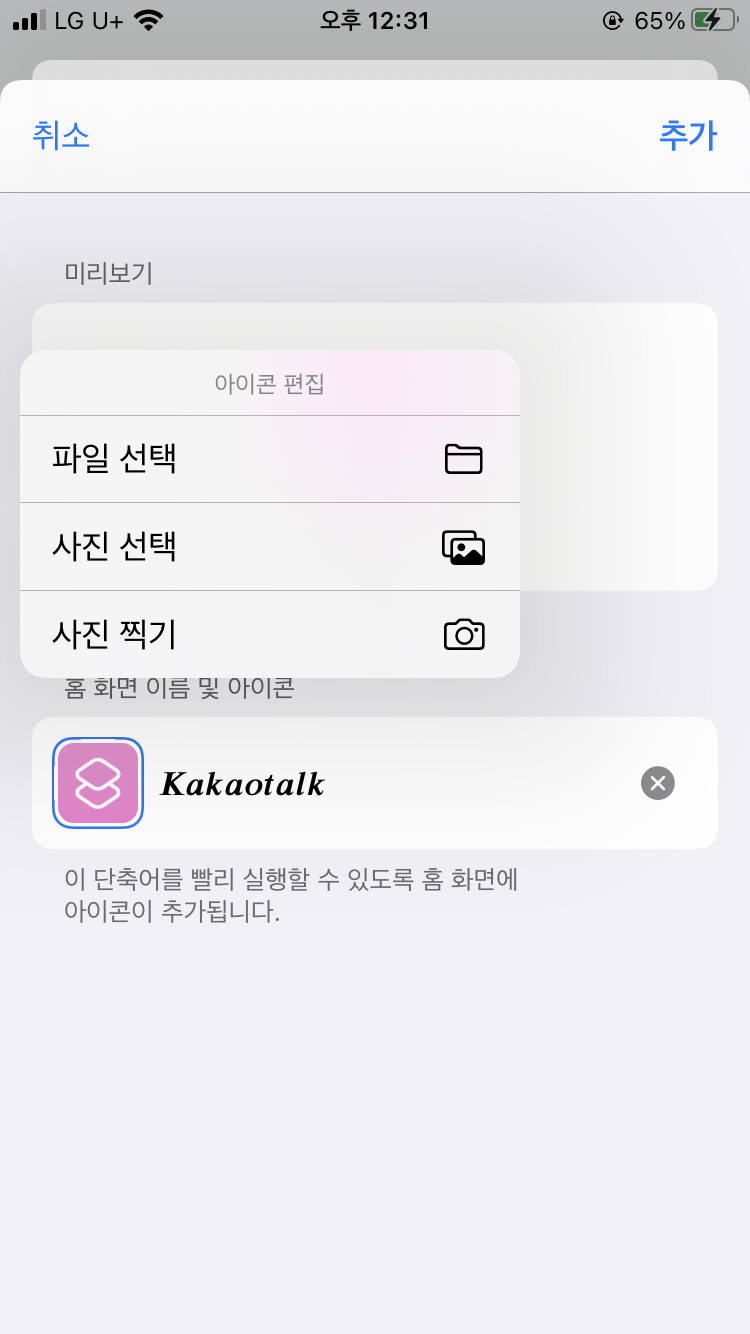 홈 화면에 추가에서 아이콘 이미지를 방금 저장한 이미지로 바꿔주기!!